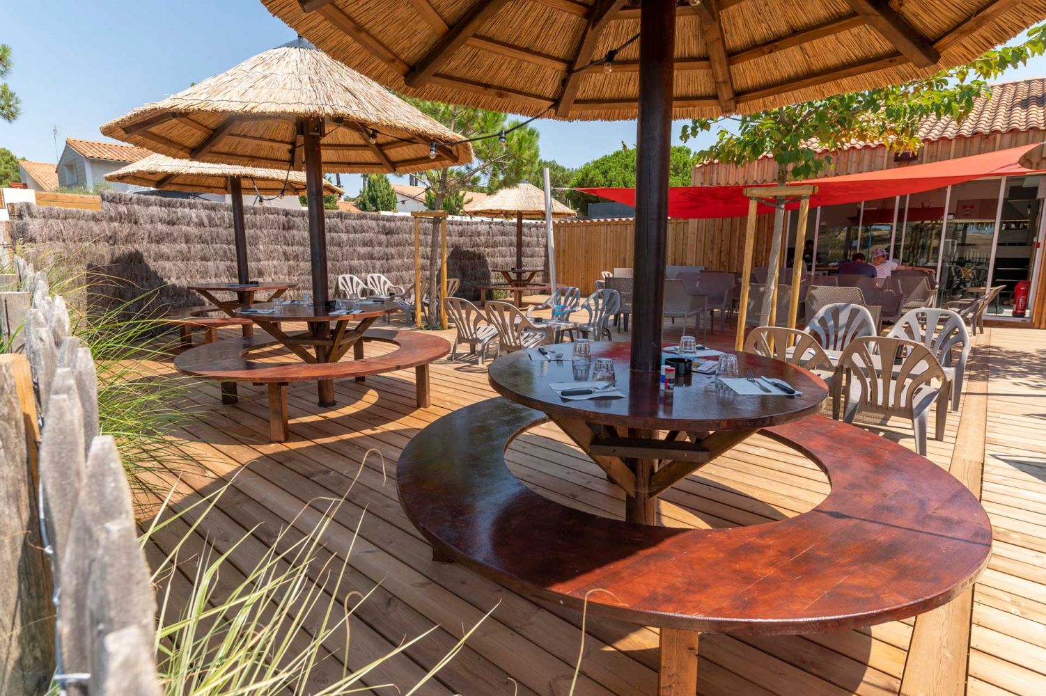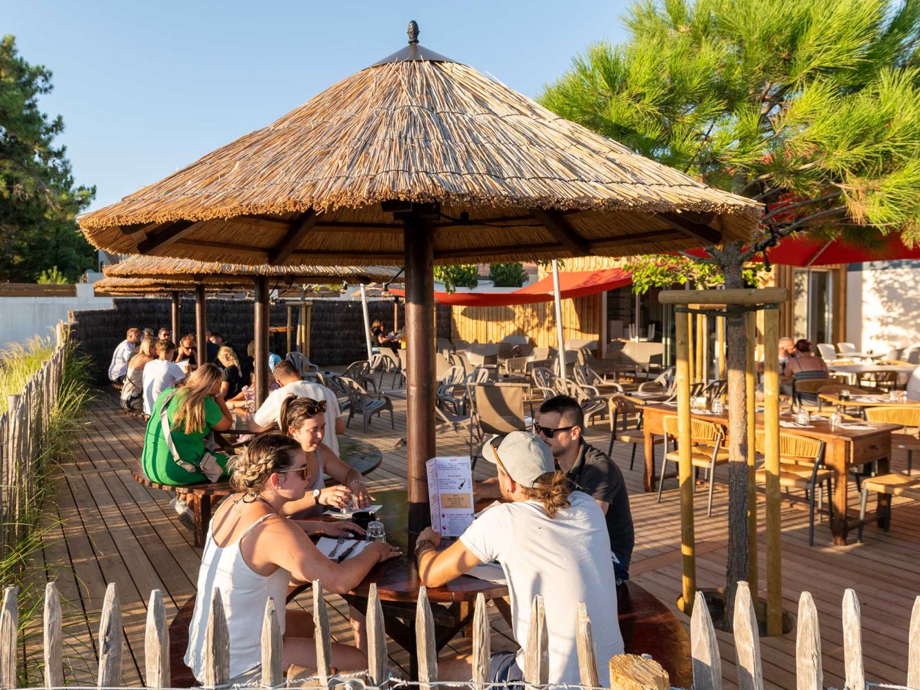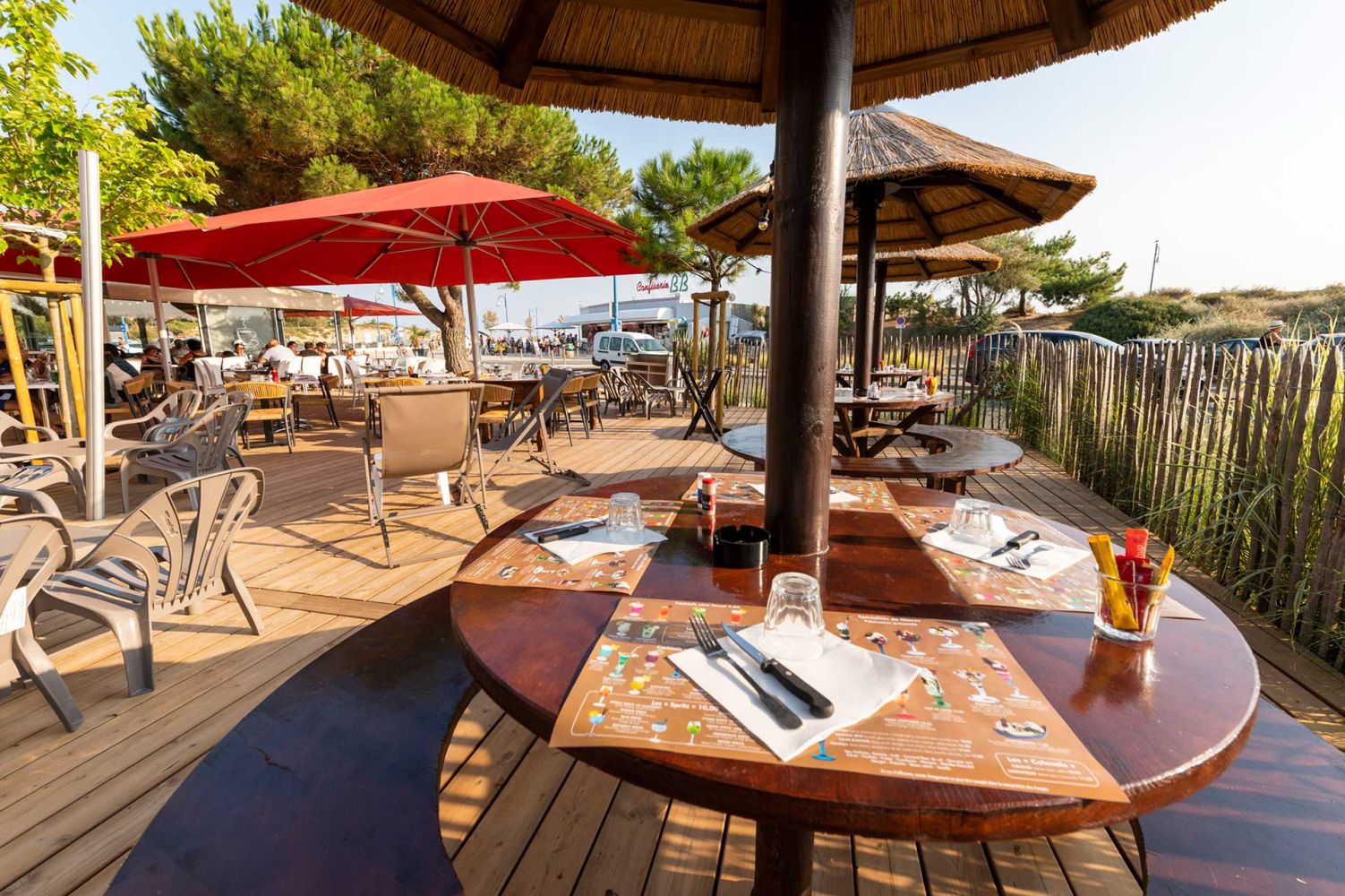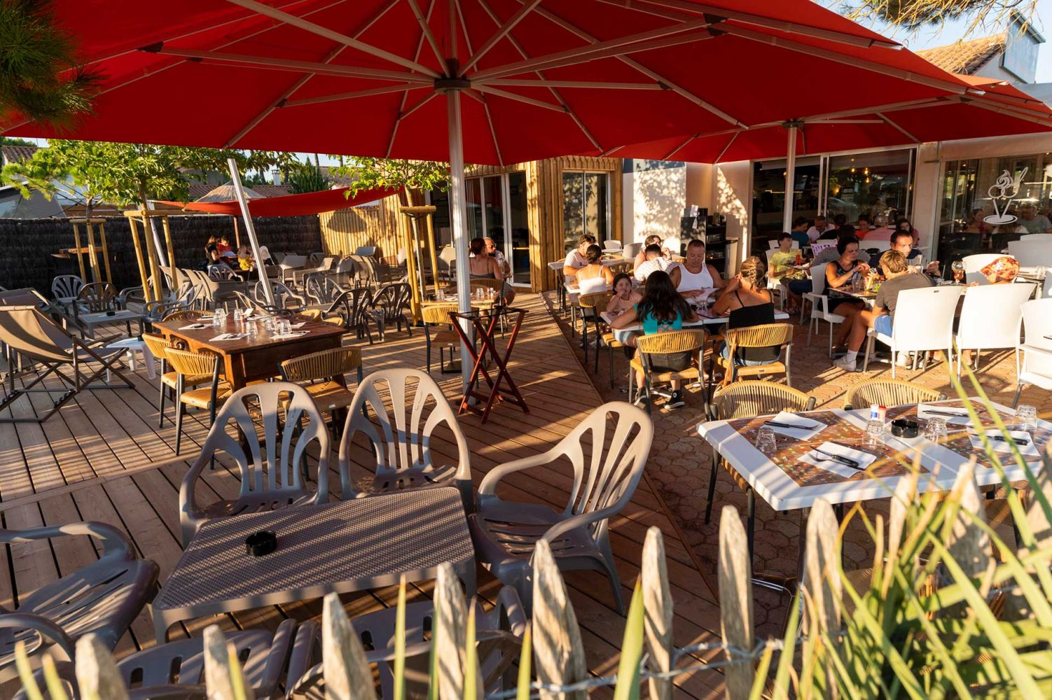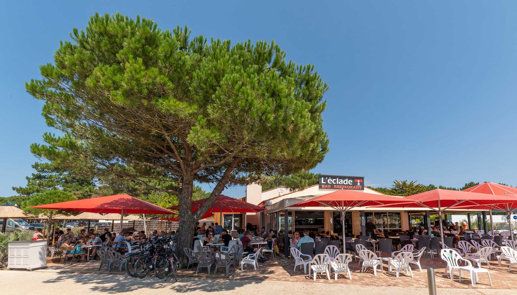 Bar à cocktails, bar à bières, mange debout, parasols paillotte ou tables de restaurant classique, L'Eclade vous accueille en continu pendant tout l'été